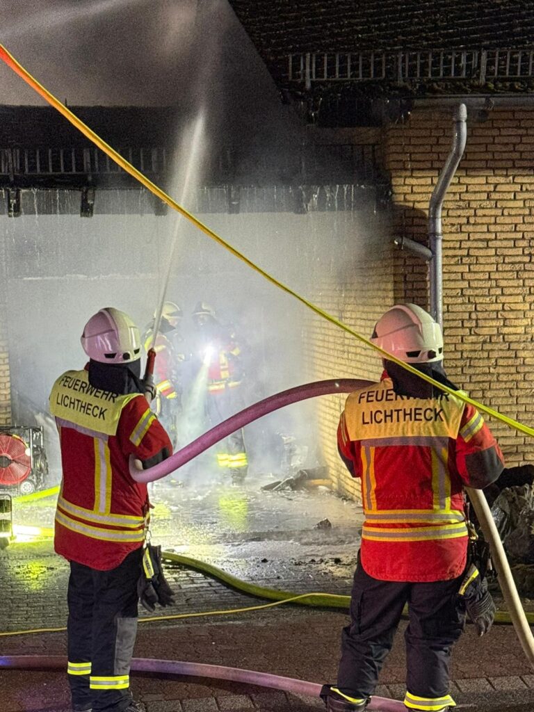 Umgehend wurde mit der Brandbekämpfung begonnen und eine Riegelstellung zum angrenzenden Wohnhaus aufgebaut. Durch das schnelle Eingreifen konnte ein Übergreifen der Flammen auf das Wohngebäude erfolgreich verhindert werden.